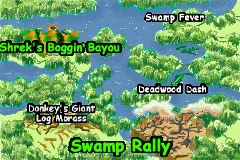 Swamp Kart Speedway is similar in design to Mario Kart Super Circuit, using the Game Boy Advance's scaling system to create the illusion of 3D worlds.