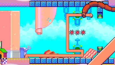 Swipe based controls will allow you to stretch through the air changing direction as you go. Latch onto a surface and your dachshund will retract to that spot.