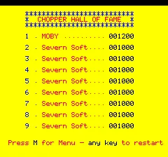 In this horizontal scrolling shooter with the screen scrolling constantly from right to left, you are the pilot of a helicopter who must shoot and avoid helicopters and balloons before attempting to destroy a base. With 6 skill levels to choose from, the game is split into three sections with the first section having you shooting and avoiding helicopters but you can only move up and down. The second section has you unable to fire and once again you can only move up and down while you avoid various types of balloons and missiles. Touching any craft or missile loses you one of five lives and when they are gone it is game over.